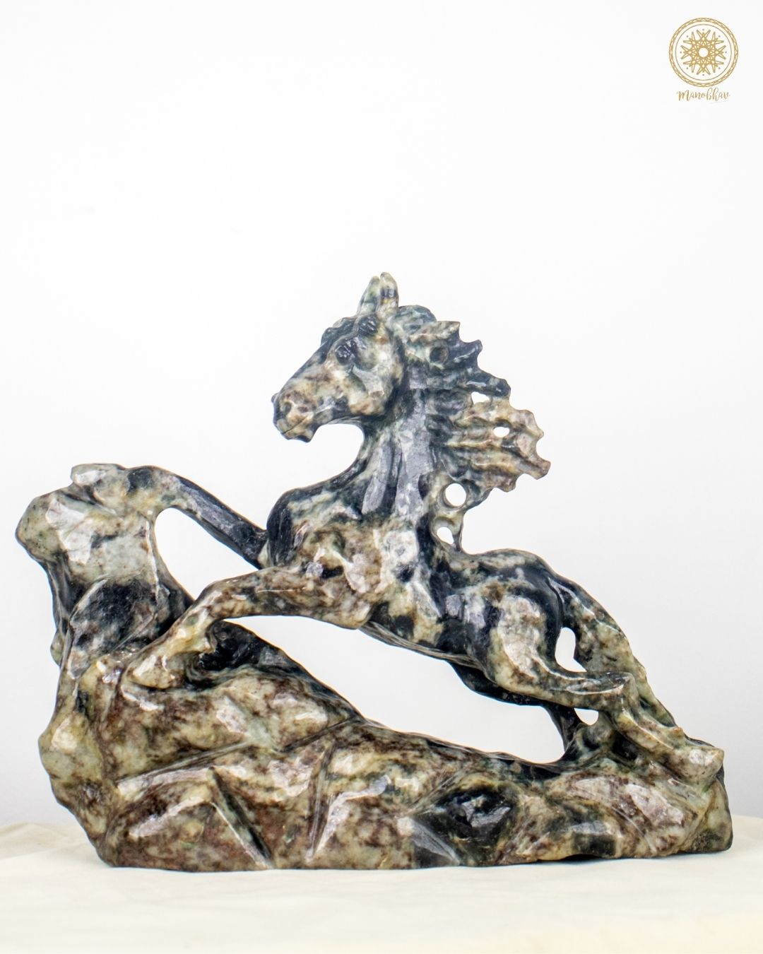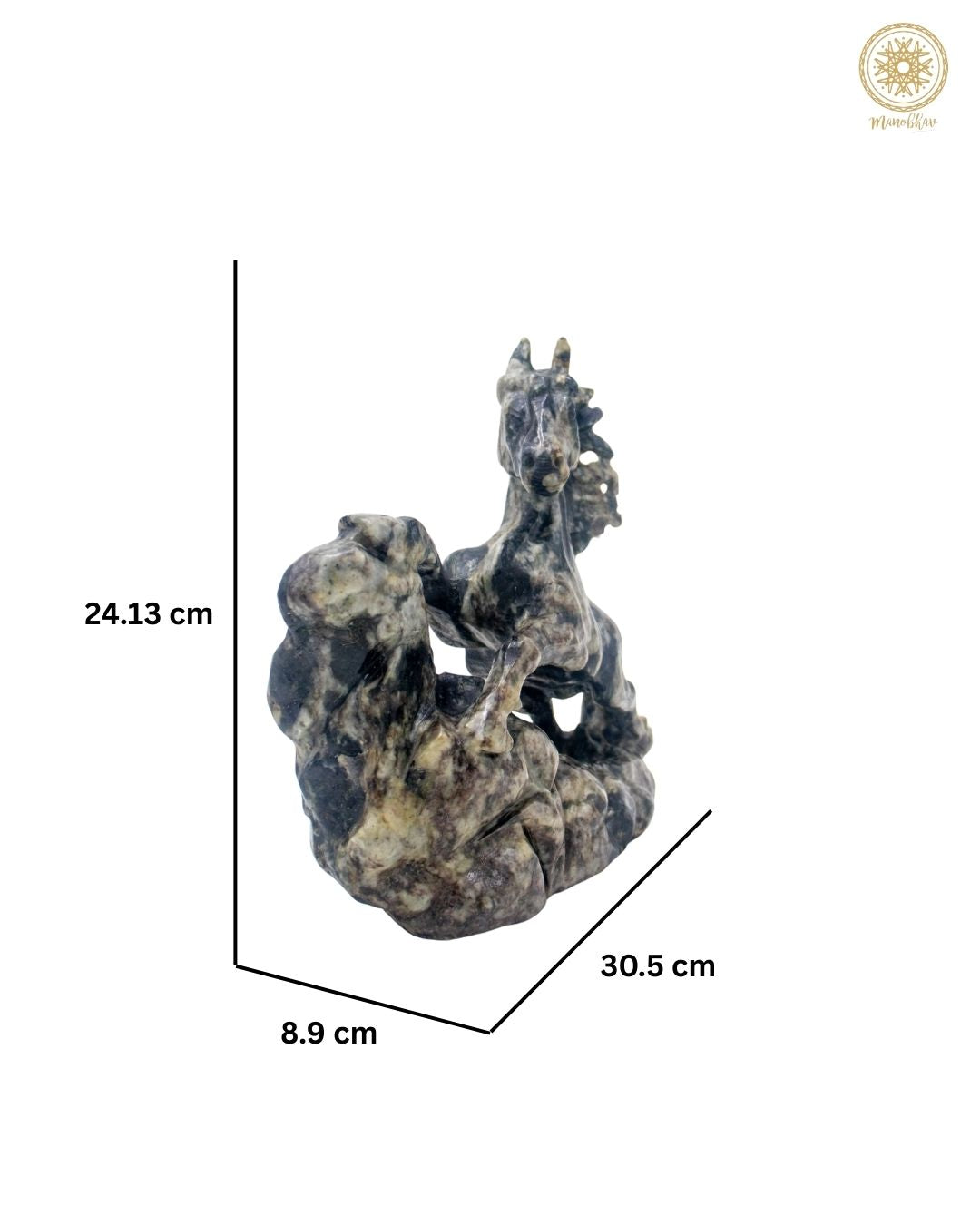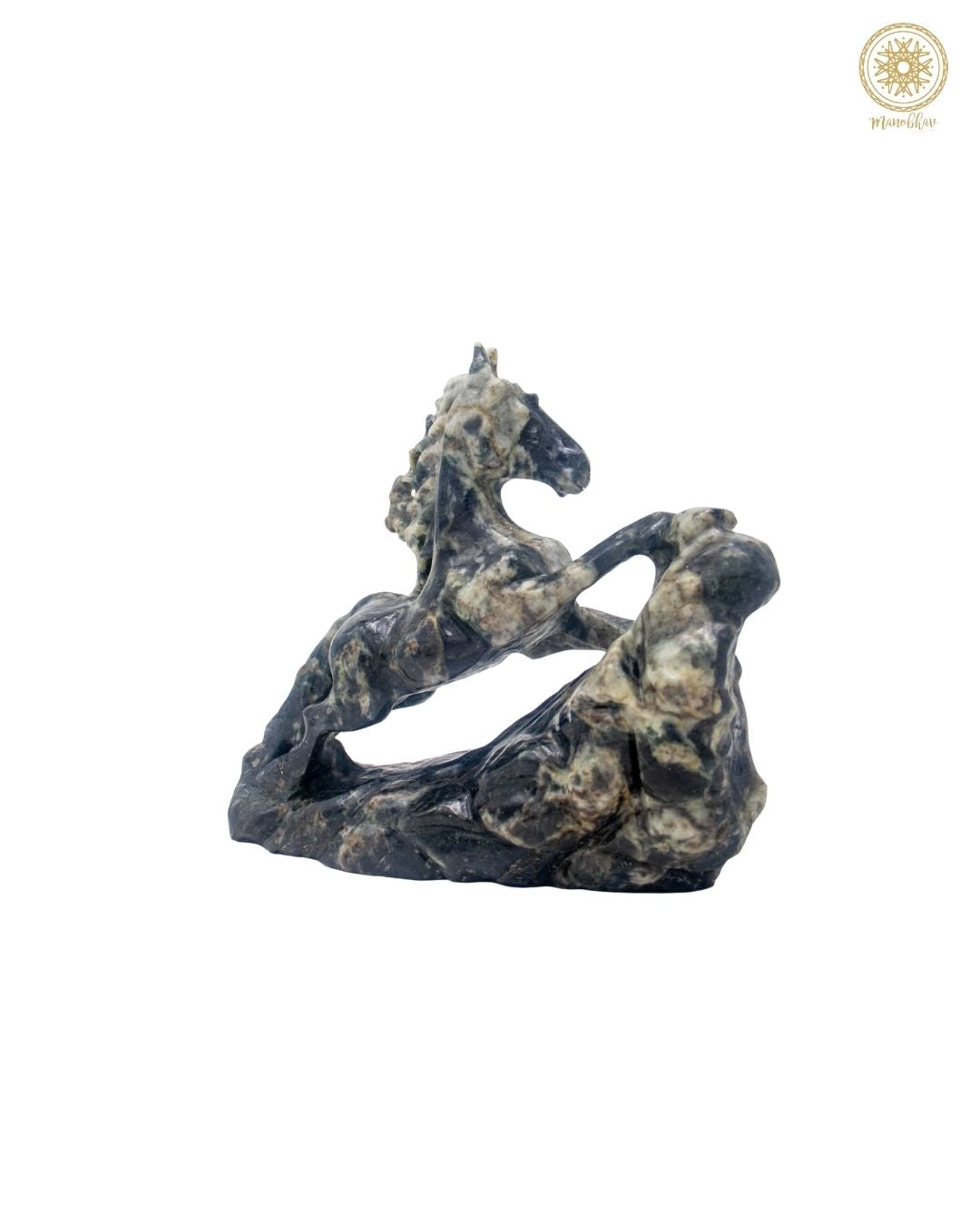 This beautiful Kaka Nili statue shows a strong and graceful horse standing proudly on a solid base. The design looks bold and artistic, with natural stone-like textures that make it stand out.