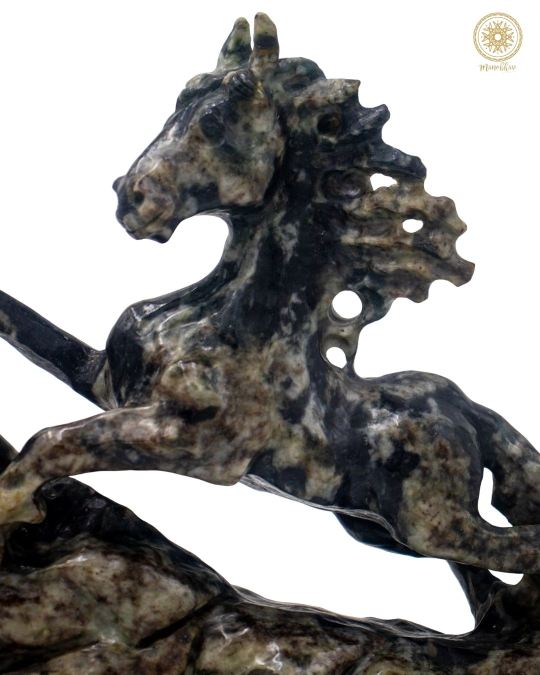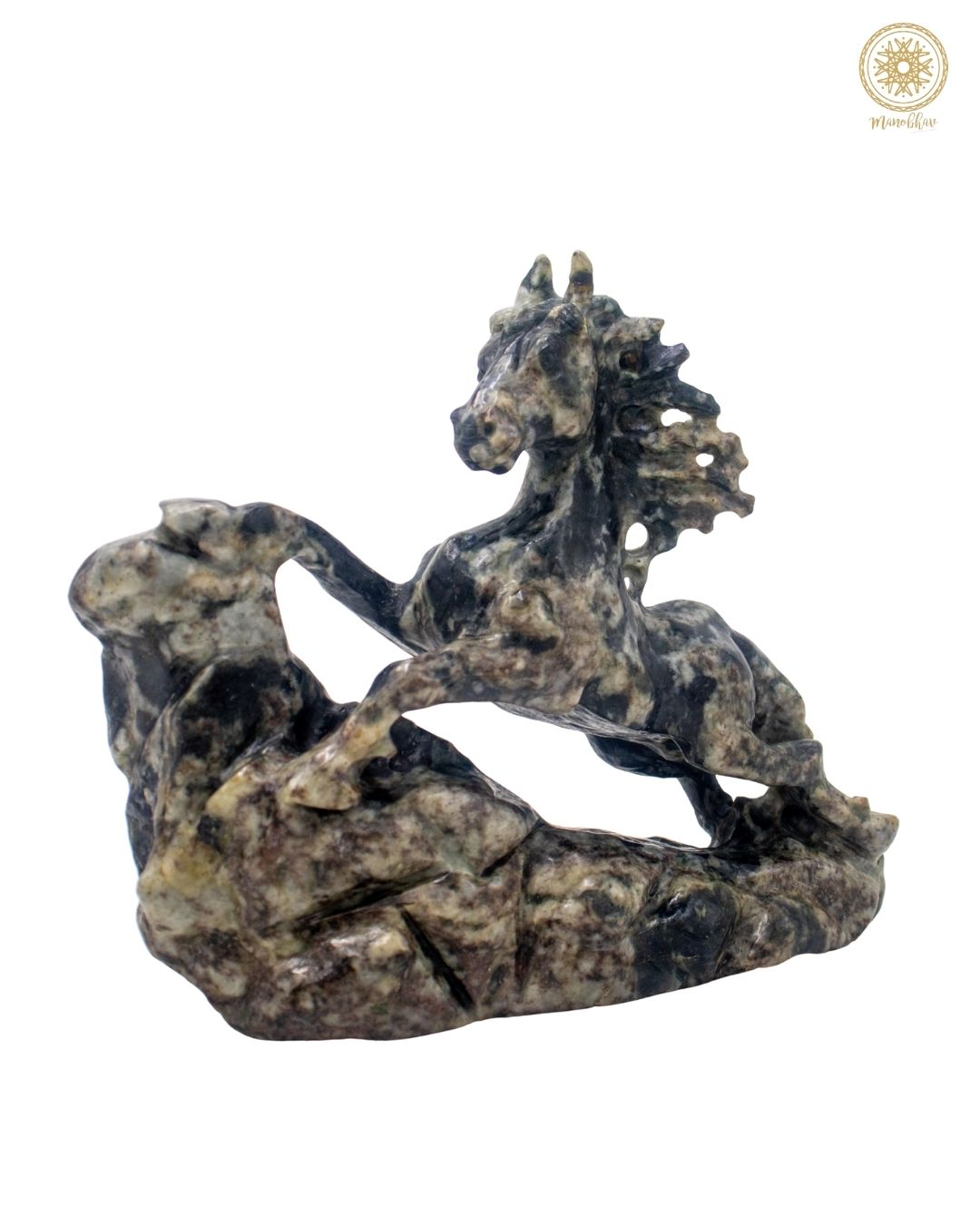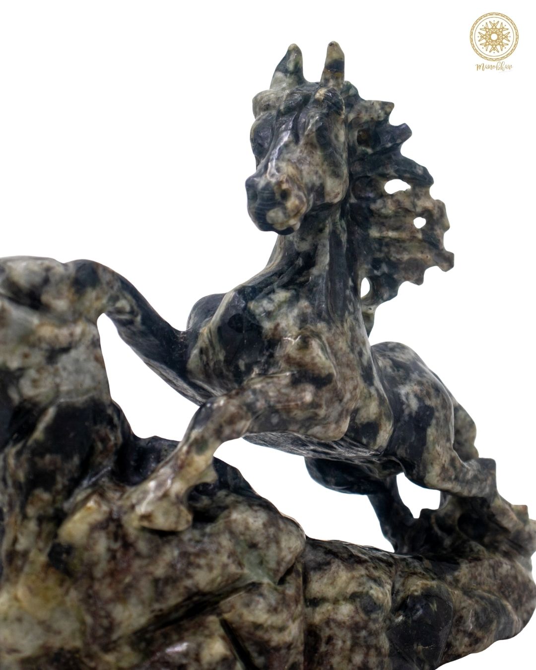 This beautiful Kaka Nili statue shows a strong and graceful horse standing proudly on a solid base. The design looks bold and artistic, with natural stone-like textures that make it stand out.