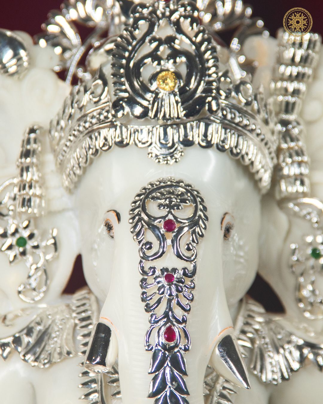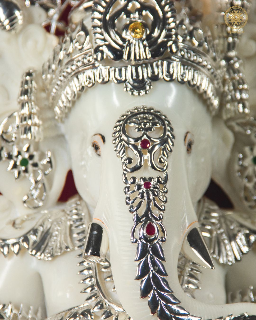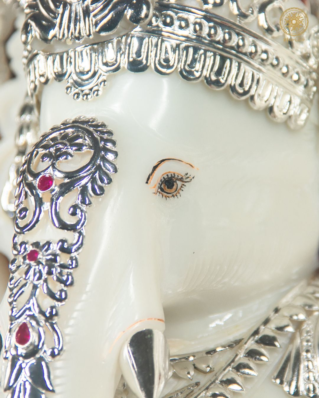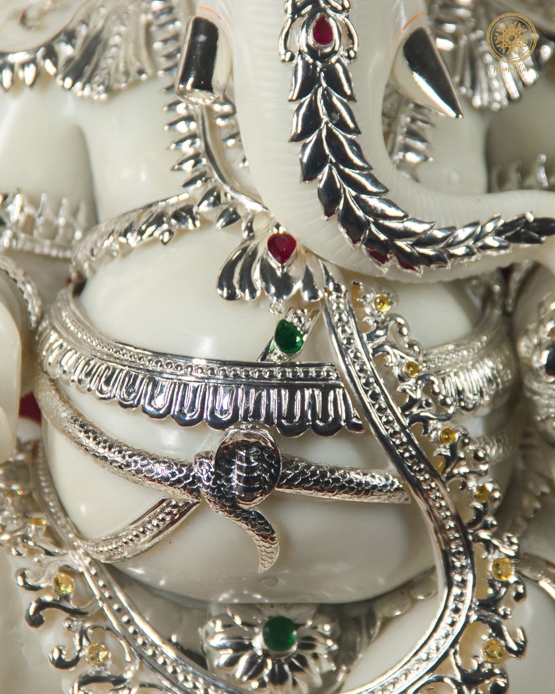 Buy Large Marble Dust Ganesha Idol with silver-plated jewelry for Home & Pooja Rooms online.