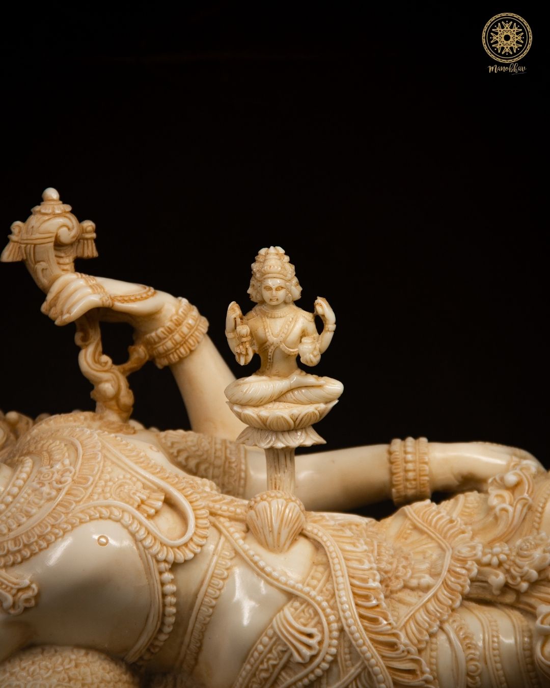 This Statue is Handcrafted with intricate detailing, this vintage Vishnu sculpture showcases Lord Vishnu in his reclining posture, with Goddess Lakshmi seated beside him, representing peace and prosperity. Made from high-quality resin, the statue shows exquisite craftsmanship which makes it a perfect addition to home altars, meditation spaces, puja rooms, or antique decor collections.