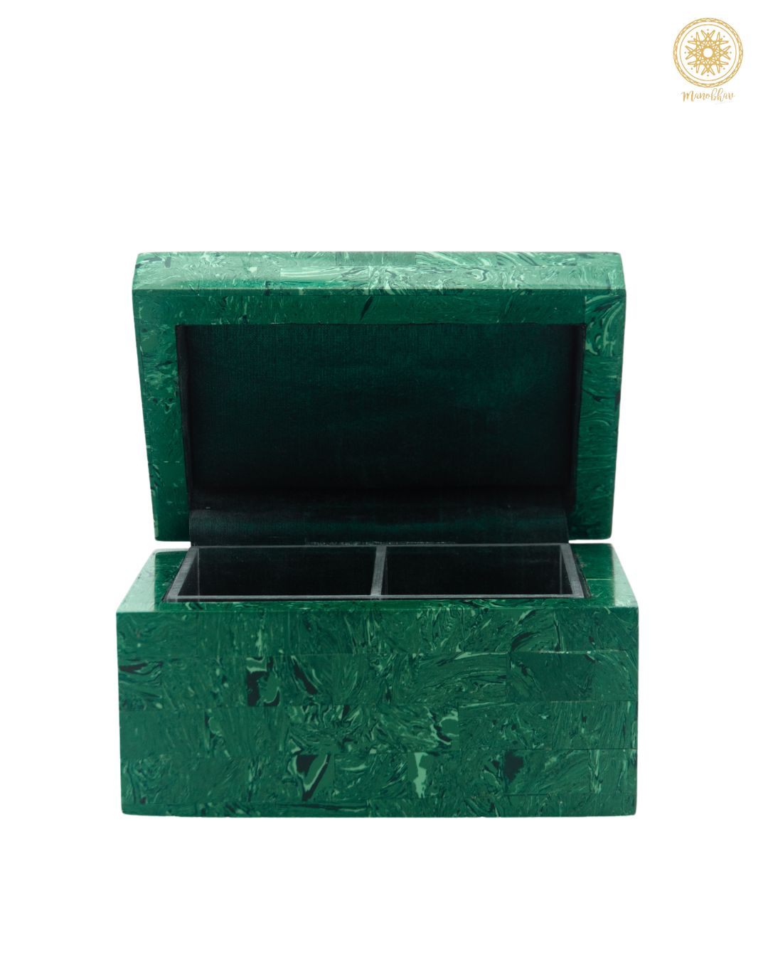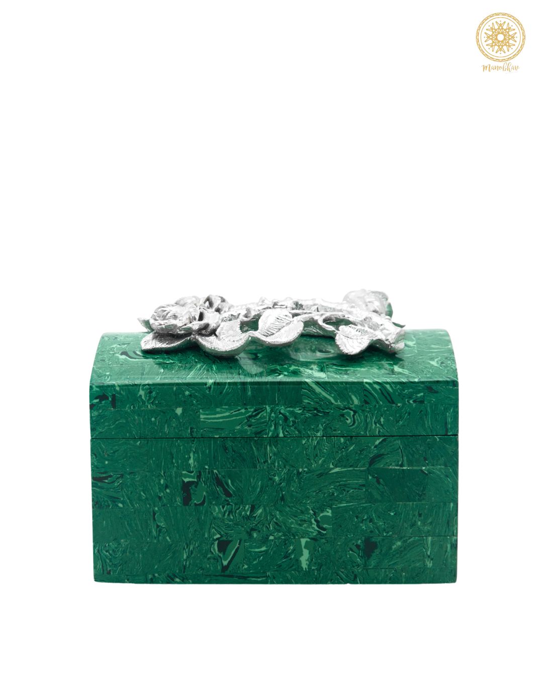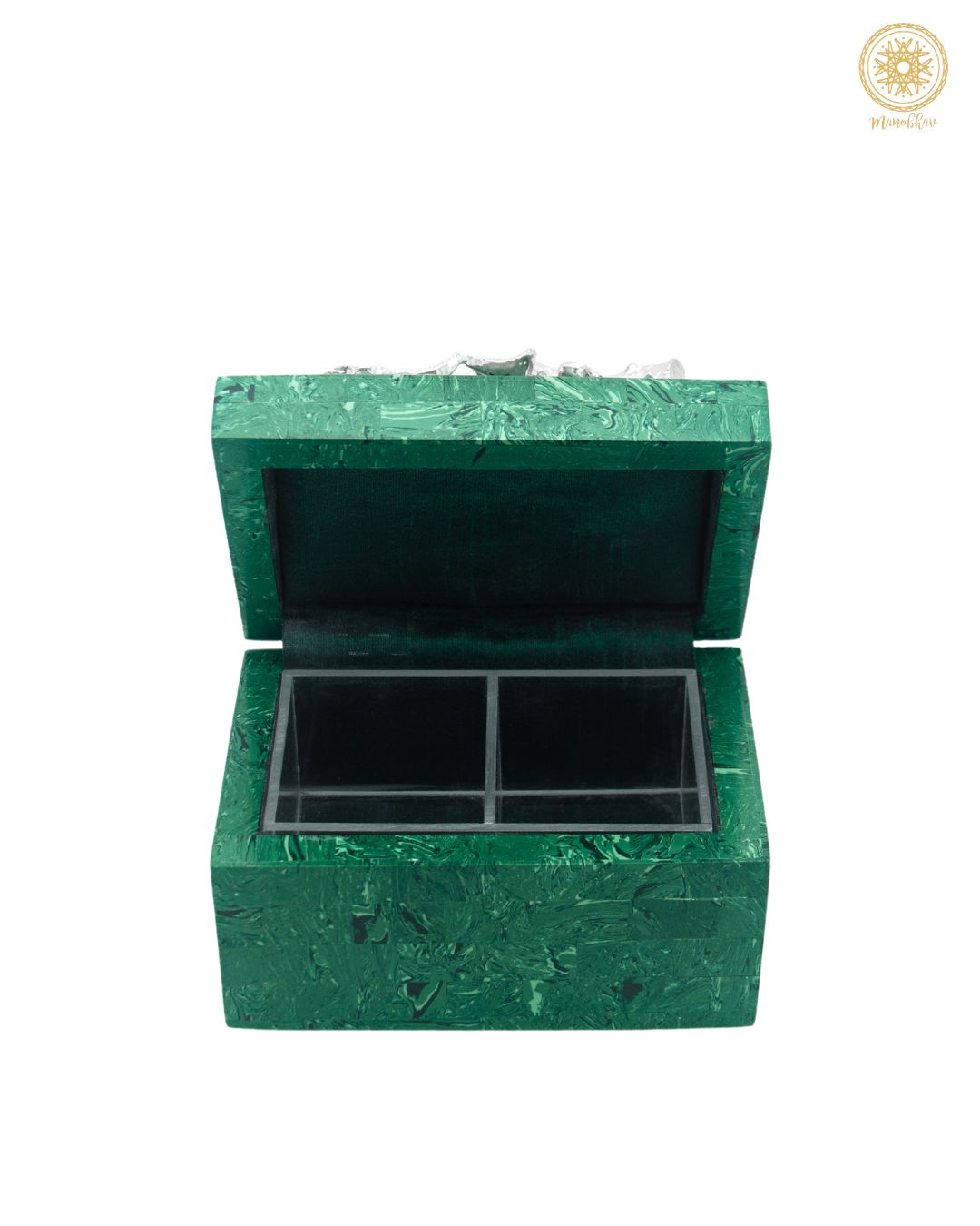 Explore our Malachite Jewelry Box, a piece where the deep green tones meet a handcrafted silver rose motif, offering not just storage but an art piece.