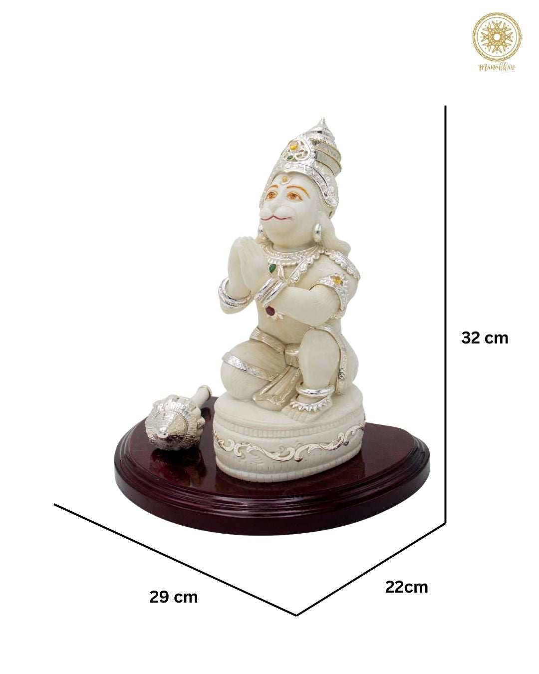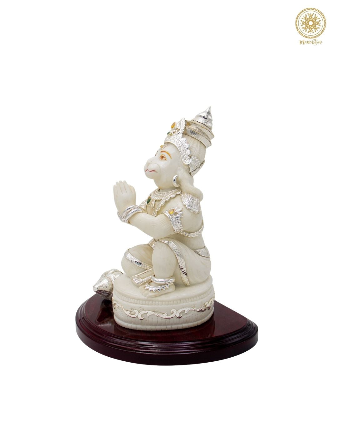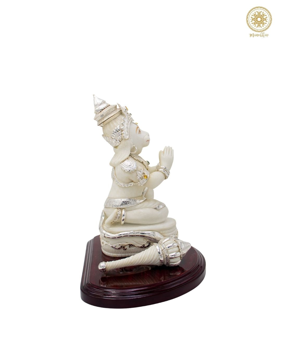 Handcrafted Marble Dust Hanuman Idol with Silver Finish Jewelry