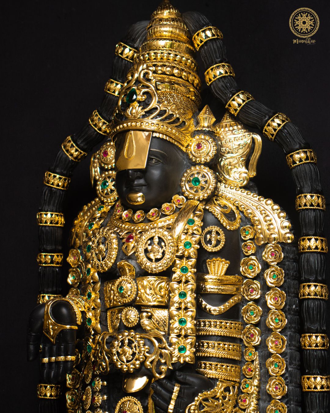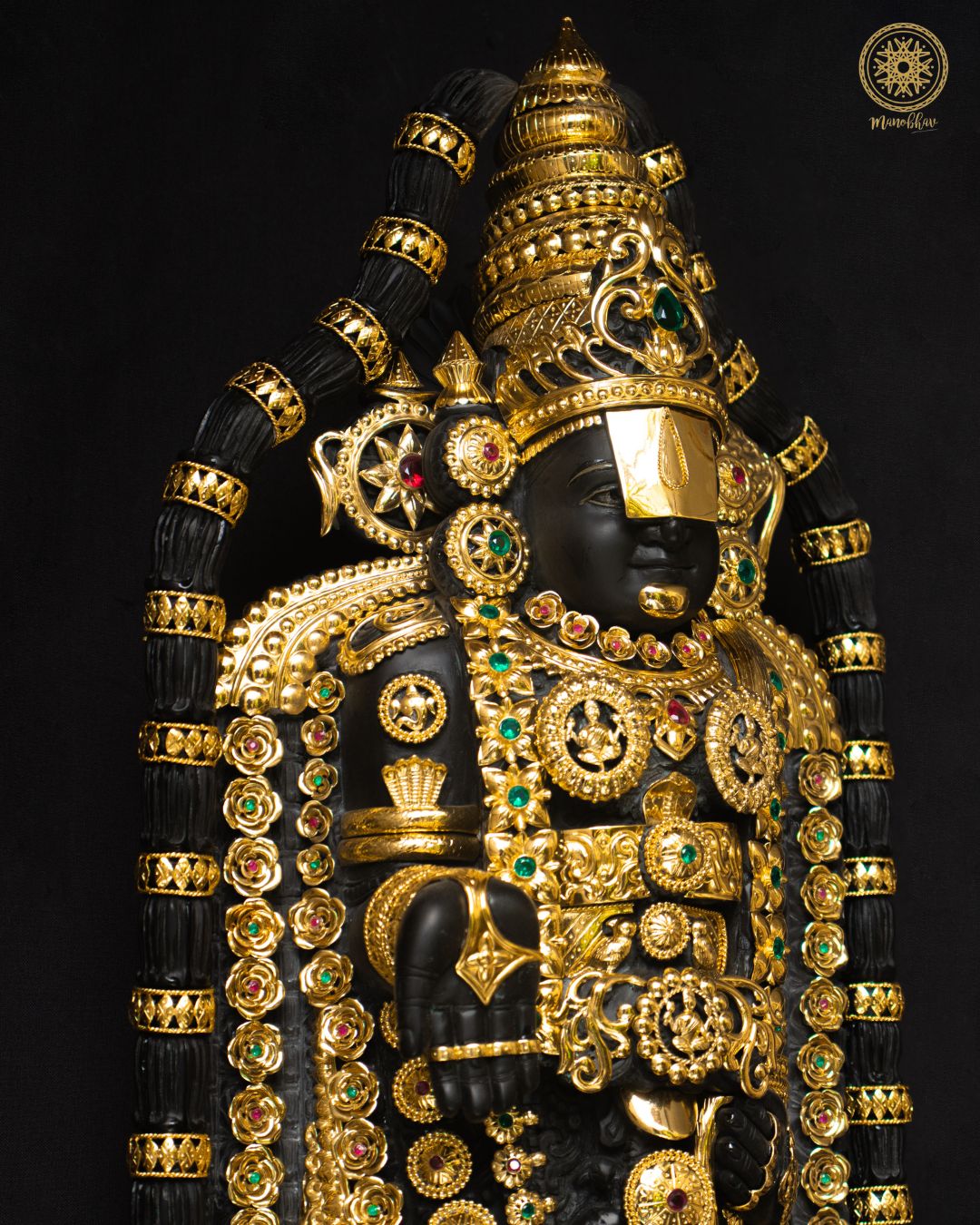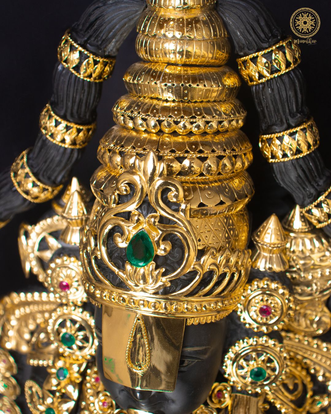 Handcrafted Tirupati Balaji Idol in Black Marble Dust with Gold-Plated Jewelry
